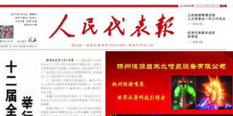 恭贺扬州恒源喷泉荣登两会特刊